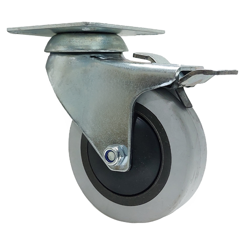نوع ترمزدار این نوع چرخ ها ویژگی گردانی همچون نوع گردان دارد با این تفاوت که پدالی بر روی آن قرار دارد که با فشردن آن چرخ بدون حرکت باقی می ماند و کاربردهای آن برای تخت های بیمارستان می باشد تا بتوان تخت را در یکجا به صورتی که حرکت نکند قرار داد.